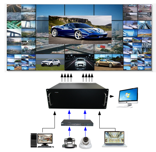 高清數(shù)字解碼矩陣自帶內(nèi)拼接、分割、開窗、漫游功能,廣泛應(yīng)用于道路交通、平安智慧城市監(jiān)控、軍隊(duì)、工廠、學(xué)校、銀行、商場、大型公共場所、森林防火、智能樓宇等各類場合的視頻監(jiān)控中心。實(shí)現(xiàn)前端的網(wǎng)絡(luò)視頻信號的解碼,及對大屏顯示的控制。